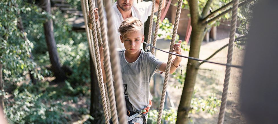 Je maakt hier een avontuurlijke wandeling tussen de toppen van de bomen. Vanaf het Boomkroonpad zijn verschillende avontuurlijke wandelroutes en speurtochten gemarkeerd. Kinderen kunnen uitgebreid spelen in het speelbos.